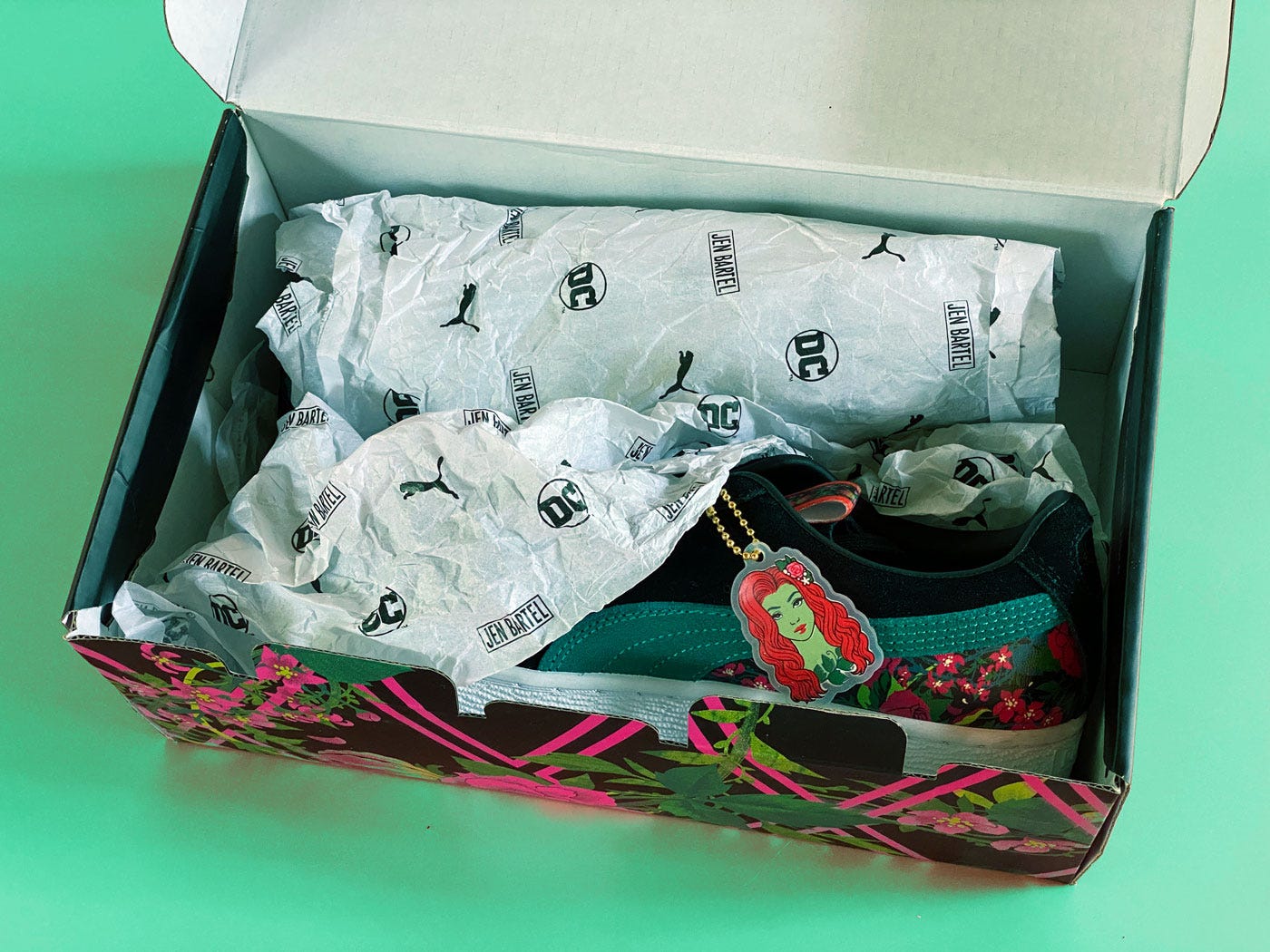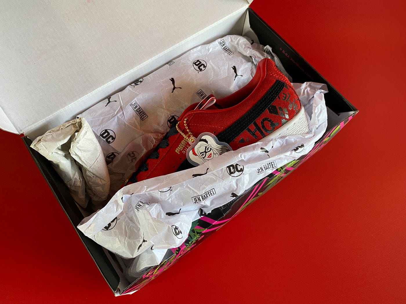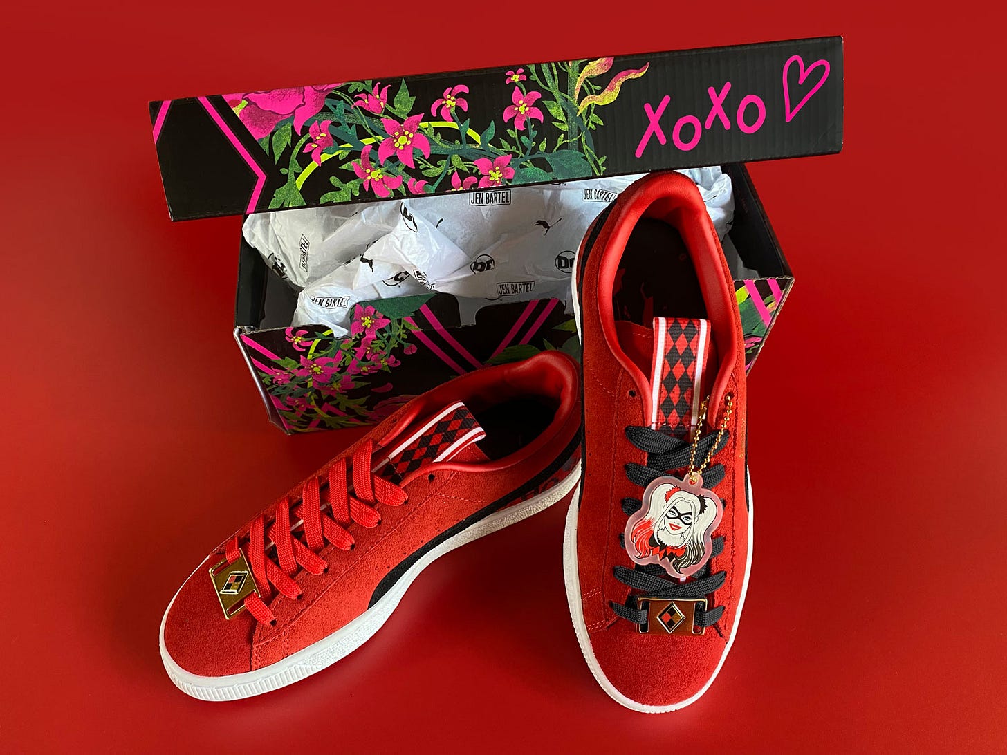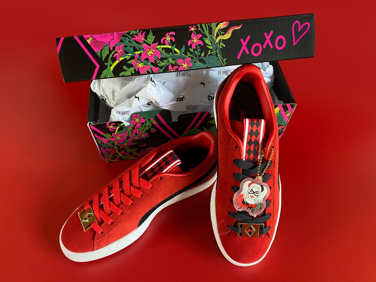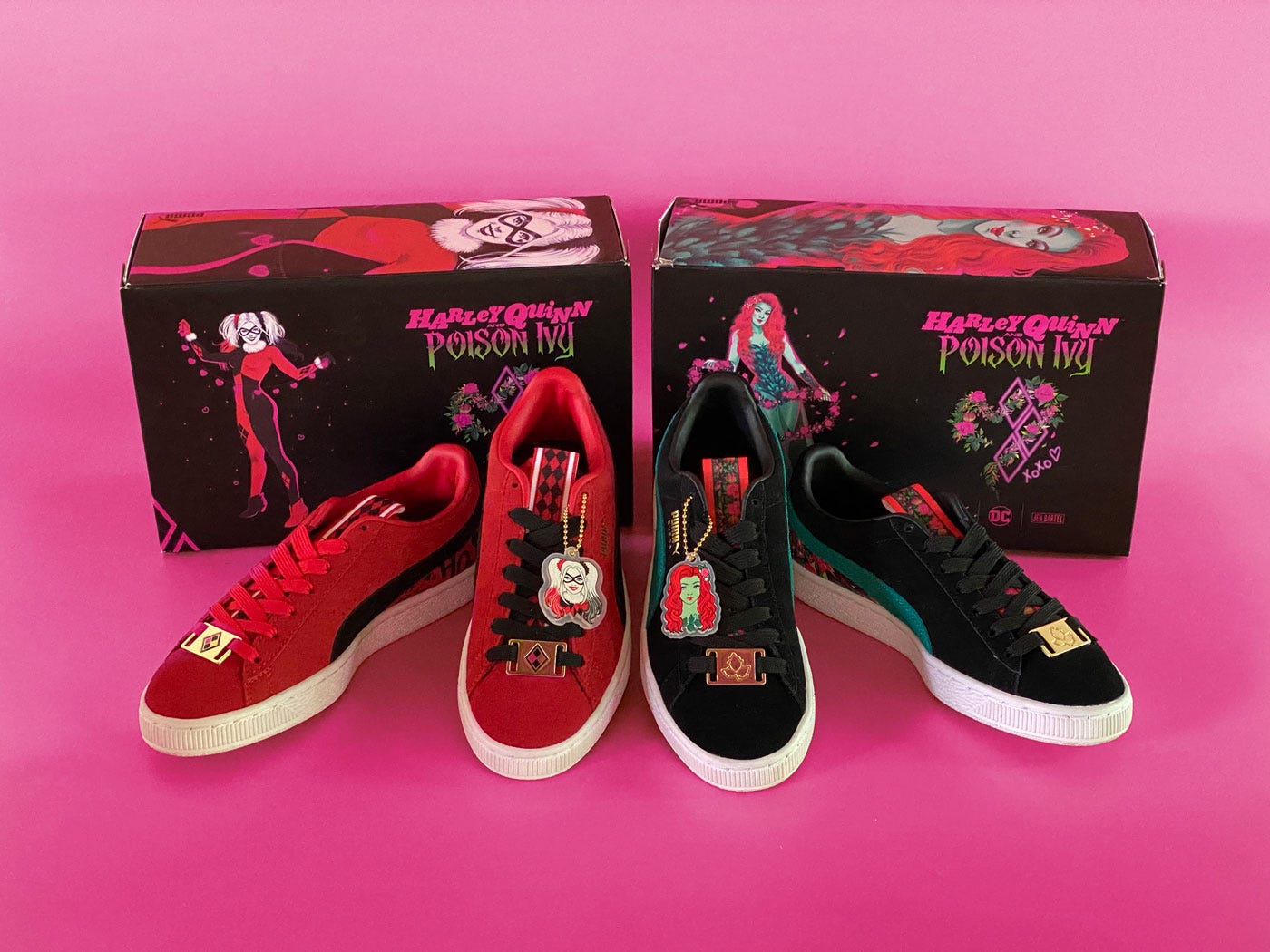 I’ve partnered with PUMA and Foot Locker to bring you a special collection featuring Gotham’s Most Dangerous Girlfriends, Harley Quinn and Poison Ivy! The full collection will be available at Foot Locker both online and in select New York and California stores starting at 10am Eastern on June 10th, and quantities will be limited, so don’t forget to mark your calendars..! If you’re on Instagram and find it easier to be notified there, you can follow @footlockerwomen for updates.
